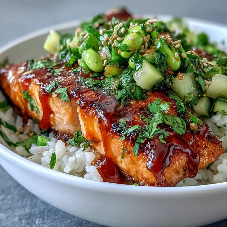 Save What I love most about this bowl is how it came together not from a cookbook but from watching someone enjoy something simple and thinking, "I could make that." Every element here has a job—the salsa brings freshness, the sauce brings drama, the salmon brings substance—and somehow they all work together without competing. That's the kind of meal that makes you feel capable in the kitchen.
