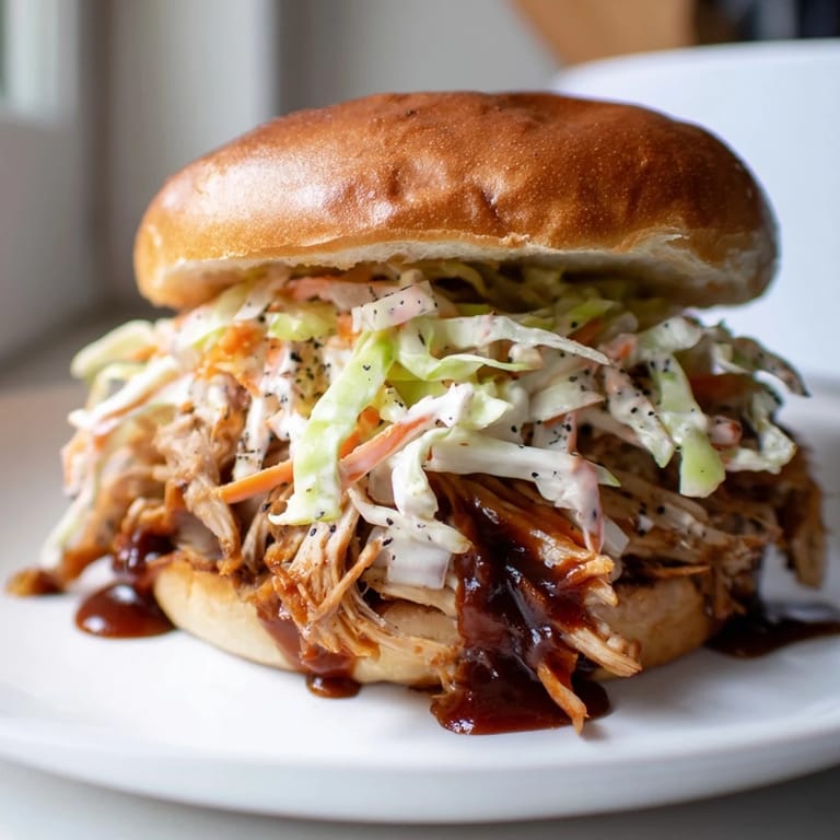 Save There's something about the smell of chicken hitting hot oil that makes a Tuesday feel like a weekend. I discovered this sandwich on a lazy afternoon when I had leftover grilled chicken and a bottle of barbecue sauce sitting in the fridge, looking at each other. Instead of the usual cold chicken salad routine, I tossed it all together, toasted some buns, and suddenly lunch felt like a celebration. The sauce clung to every strand of chicken, and when I piled it onto that warm bun with a handful of crunchy slaw, I understood why this combo has become a permanent fixture in my rotation.