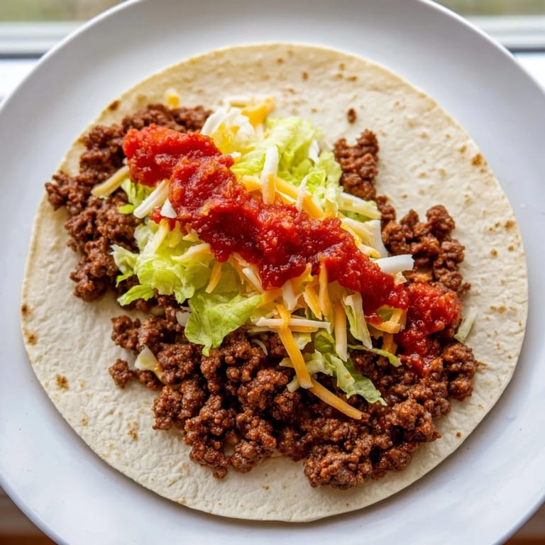 The order you layer things actually matters more than you'd think. Meat goes first, then lettuce to create a barrier so the salsa moisture doesn't immediately soften your shell. Cheese melts just a tiny bit from the warm meat, and that's when you pile on your salsa and any other toppings. If you're using sour cream, a small dollop at the end stops everything from getting soggy.