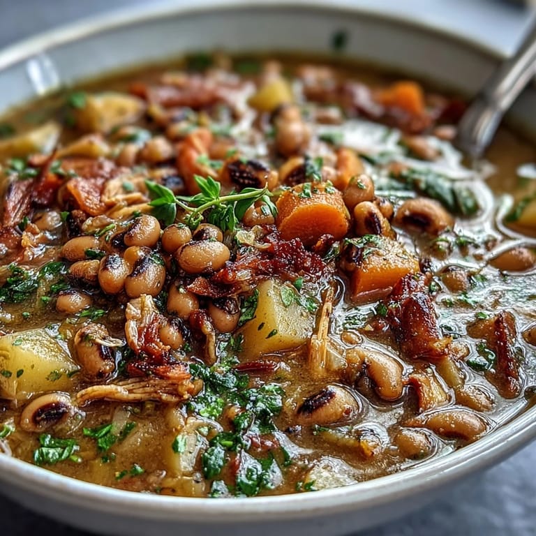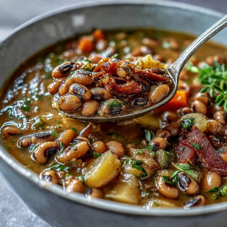 Save There's something about the smell of smoked ham hocks hitting a hot pot that takes me straight to my grandmother's kitchen on New Year's Day. She never measured anything—just grabbed what felt right and let the stove do the talking. Years later, I finally understood what she was doing: building layers of flavor that somehow taste like comfort and tradition in every spoonful. This black-eyed pea stew is that same magic, except now I actually know why it works so well.