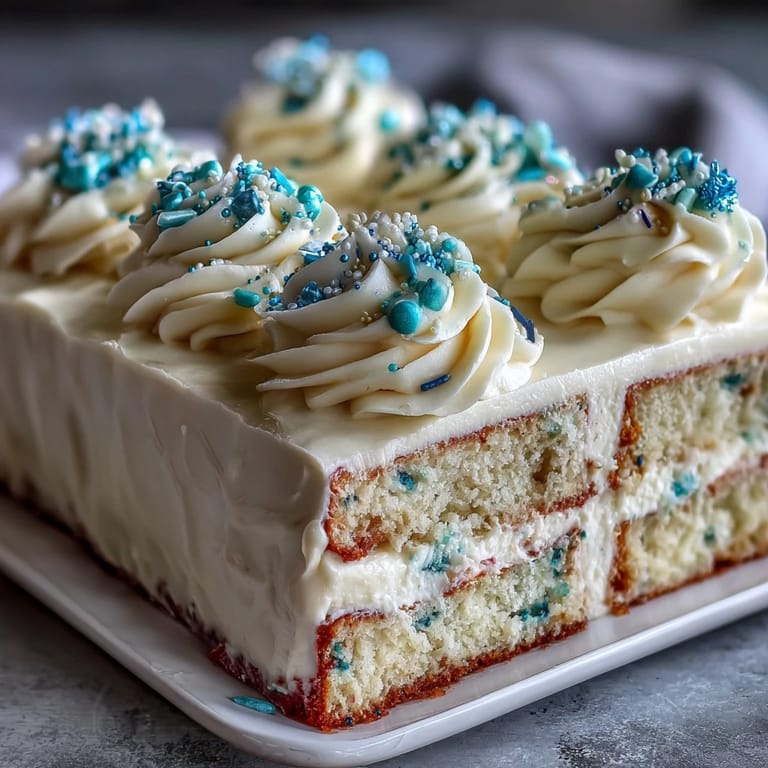 Save This recipe balances a classic American dessert style with a joyful, decorative touch. The combination of a soft golden cake and rich, whipped frosting ensures that every slice is as delicious as it is festive.