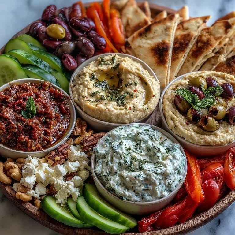 Save Last summer, I found myself hosting a spontaneous brunch when friends texted that they'd be in town for exactly three hours. Instead of panicking, I remembered a Mediterranean platter I'd assembled years ago at a restaurant in Athens—not a formal meal, but this glorious mess of dips, vegetables, and bread that somehow made everyone linger longer than planned. That afternoon, I recreated it from memory, and what started as damage control became the meal people actually wanted to eat. Now whenever I need to feed a group without the fuss of a sit-down dinner, this board appears on my table.
