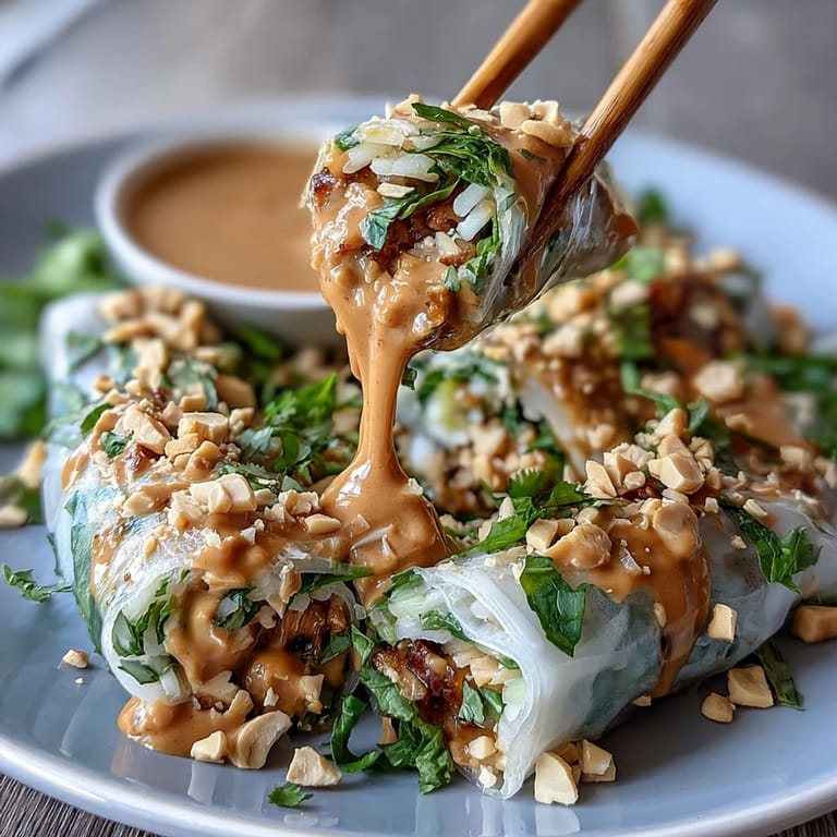 - Scatter chopped peanuts and fried shallots over the top, add a squeeze of lime juice, and serve immediately so the rice paper stays tender but doesn't get soggy.