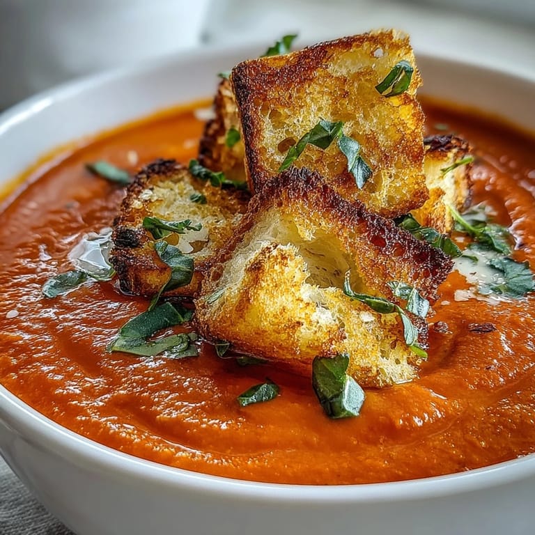 This recipe is honestly forgiving once you understand its bones. I've added smoked paprika for a whisper of smoke, splashed in balsamic vinegar when I wanted something deeper, and stirred in coconut cream instead of dairy because that's what was in my fridge. Fresh basil scattered on top is never wrong, and a drizzle of good olive oil at the end feels like an apology and a celebration at once. The croutons, though—the croutons stay. They're the one non-negotiable thing.