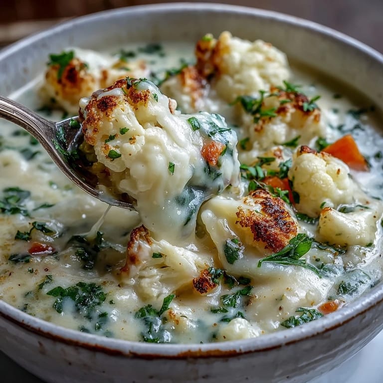 Save My neighbor handed me a basket of cauliflower from her garden one October afternoon, more heads than I could reasonably use before they went soft. I had never thought of cauliflower as soup material until that week, when I tossed it into a pot with whatever I had on hand. The kitchen smelled like butter and thyme, and by the time I blended half of it into something silky and thick, I knew I had stumbled onto something I would make again and again. It is the kind of soup that feels like a hug without trying too hard.